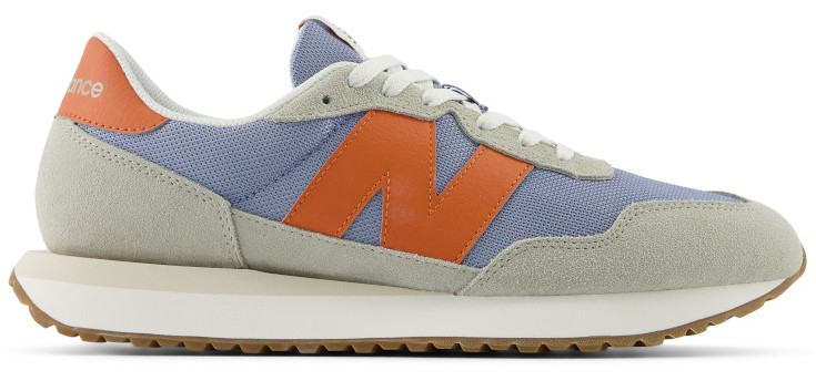 Taking design cues from 1970s archival favorites, New Balance’s® 237 melds heritage influences with a modern outlook. The 237 utilizes an EVA midsole, herringbone outsole and streamlined upper as a classic launching point, with modern flourishes like oversized N branding, extended midsole length, and gator inspired foxing and mudguard offering a modern take on the decade when running shoes truly made their mark for the first time. Experimental in spirit yet easily accessible, the 237 is a deceptively simple, contemporary statement piece.