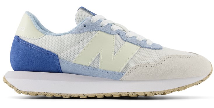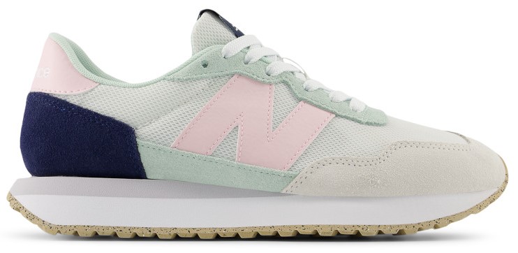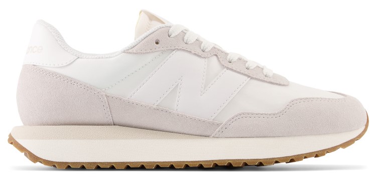 Taking design cues from 1970s archival favorites, New Balance’s® 237 melds heritage influences with a modern outlook. The 237 utilizes an EVA midsole, herringbone outsole and streamlined upper as a classic launching point, with modern flourishes like oversized N branding, extended midsole length, and gator inspired foxing and mudguard offering a modern take on the decade when running shoes truly made their mark for the first time. Experimental in spirit yet easily accessible, the 237 is a deceptively simple, contemporary statement piece.